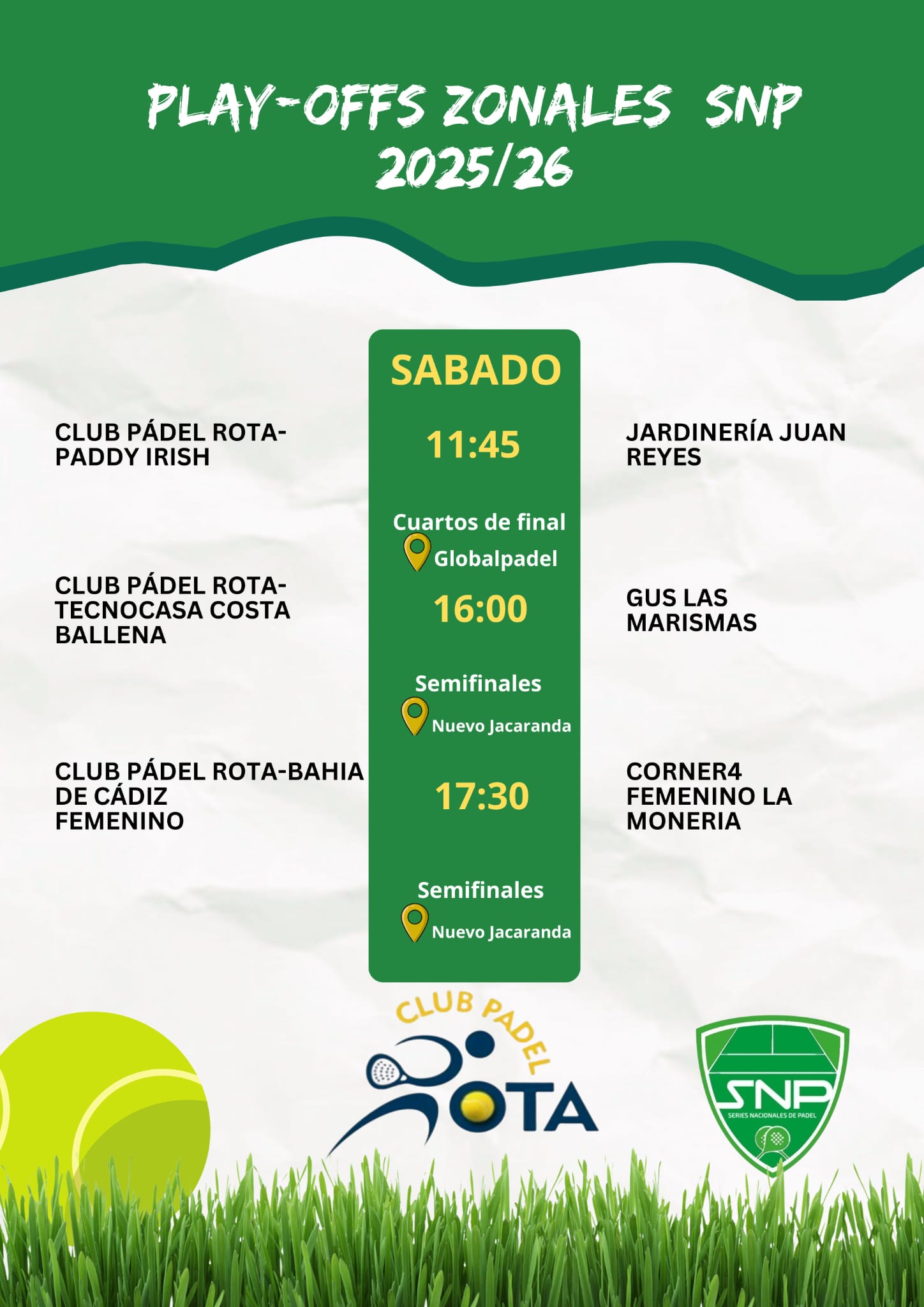 ¡Atención, socios del Club Pádel Rota!Este año regresa nuestra *Liga del Club*, manteniendo el formato tipo *circuito*:*Tres torneos oficiales* a lo largo de la temporada, todos ellos *sumando puntos* para lograr una de las codiciadas plazas del *Master Final*, donde solo competirán los *16 mejores* de cada categoría. ¡El reto está servido! CATEGORÍAS DISPONIBLES Masculino* *A / B / C / D (principiantes)* Femenino* *A / B / C* Infantil* *Sub 12* y *Sub 16* (modalidad *mixta permitida** )*Mínimo 8 parejas por categoría; si no, podrán fusionarse.* *Si el cuadro no alcanza 16 parejas, no habrá consolación.* PRIMER TORNEO*4, 5, 6 y 7 de diciembre**(Fechas del segundo, tercer torneo y Master Final aún por confirmar.)*## SISTEMA DE PUNTOS* *50 puntos* por participar* *50 puntos* por cada ronda superada en *cuadro absoluto** *25 puntos* por cada ronda superada en *consolación** *Bonus*: +100 al *campeón absoluto* / +25 al *campeón de consolación** *Premios* para campeón y subcampeón de cada categoría * *Premio especial* al mejor jugador de la temporada en cada categoría NORMA IMPORTANTE Puedes comenzar en la categoría que quieras, pero… *Solo podrás subir de categoría**Nunca bajar*La regularidad y el nivel… ¡marcarán la diferencia! NSCRIPCIONES* *Socios adultos*: *15 €** *Infantil*: *10 €**Circuito exclusivo para socios del Club Pádel Rota.* Muy pronto publicaremos el *cartel oficial* del primer torneo. Desde el Club Pádel Rota os invitamos a vivir con nosotros esta nueva experiencia deportiva: *más partidos, más emoción y más oportunidades para demostrar vuestro nivel.* ¡Preparad las palas! La temporada está a punto de comenzar. ¡Que ruede la bola, padeler@s!