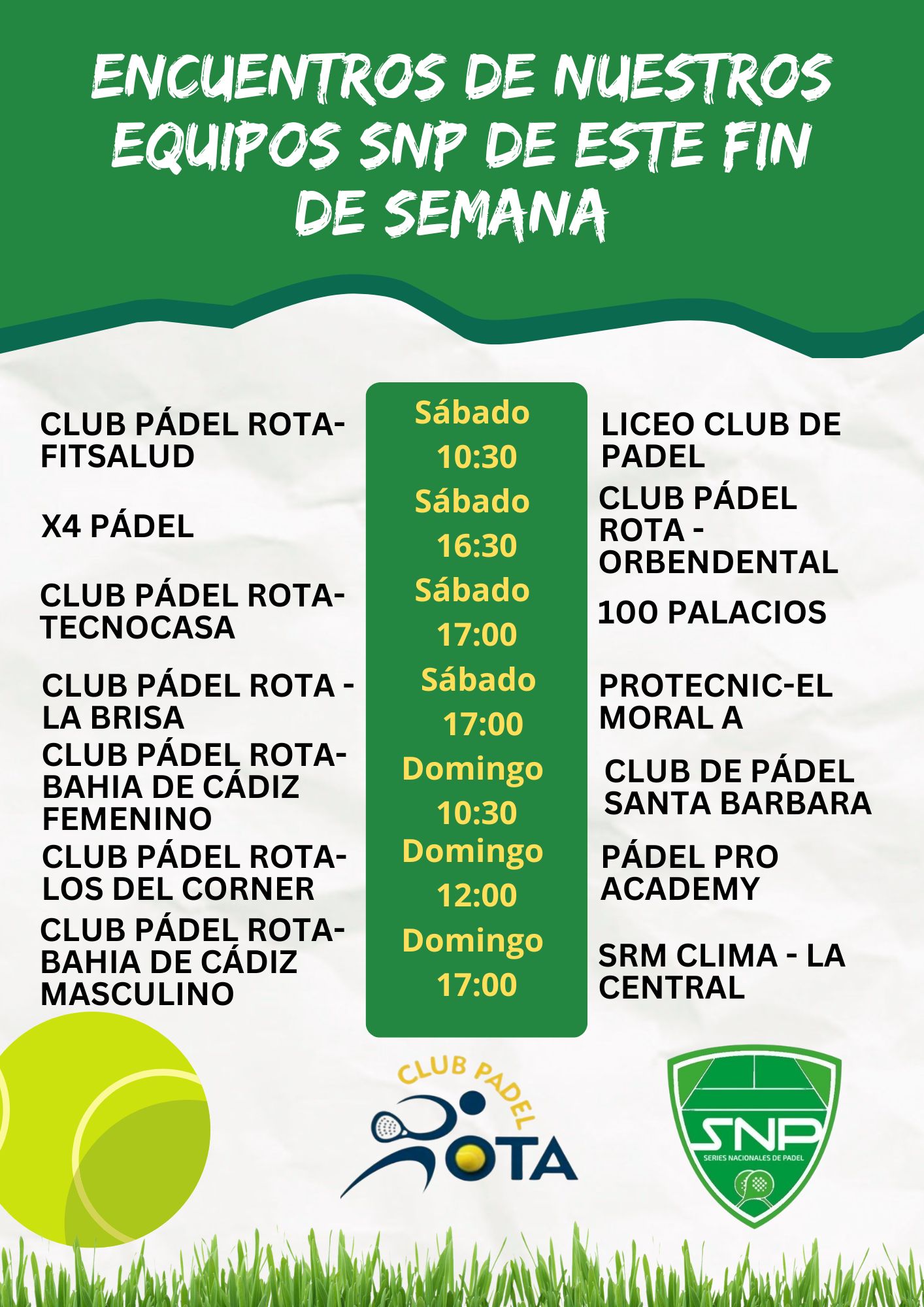 ¡Atención, socios del Club Pádel Rota!Este año regresa nuestra *Liga del Club*, manteniendo el formato tipo *circuito*:*Tres torneos oficiales* a lo largo de la temporada, todos ellos *sumando puntos* para lograr una de las codiciadas plazas del *Master Final*, donde solo competirán los *16 mejores* de cada categoría. ¡El reto está servido! CATEGORÍAS DISPONIBLES Masculino* *A / B / C / D (principiantes)* Femenino* *A / B / C* Infantil* *Sub 12* y *Sub 16* (modalidad *mixta permitida** )*Mínimo 8 parejas por categoría; si no, podrán fusionarse.* *Si el cuadro no alcanza 16 parejas, no habrá consolación.* PRIMER TORNEO*4, 5, 6 y 7 de diciembre**(Fechas del segundo, tercer torneo y Master Final aún por confirmar.)*## SISTEMA DE PUNTOS* *50 puntos* por participar* *50 puntos* por cada ronda superada en *cuadro absoluto** *25 puntos* por cada ronda superada en *consolación** *Bonus*: +100 al *campeón absoluto* / +25 al *campeón de consolación** *Premios* para campeón y subcampeón de cada categoría * *Premio especial* al mejor jugador de la temporada en cada categoría NORMA IMPORTANTE Puedes comenzar en la categoría que quieras, pero… *Solo podrás subir de categoría**Nunca bajar*La regularidad y el nivel… ¡marcarán la diferencia! NSCRIPCIONES* *Socios adultos*: *15 €** *Infantil*: *10 €**Circuito exclusivo para socios del Club Pádel Rota.* Muy pronto publicaremos el *cartel oficial* del primer torneo. Desde el Club Pádel Rota os invitamos a vivir con nosotros esta nueva experiencia deportiva: *más partidos, más emoción y más oportunidades para demostrar vuestro nivel.* ¡Preparad las palas! La temporada está a punto de comenzar. ¡Que ruede la bola, padeler@s!
